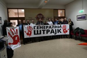 Odbornici opozicione koalicije Ujedinjeno Valjevo može – sVAnuće uspeli da uđu u zgradu Gradske uprave Valjevo gde su razvili veliki transparent – Generalni štrajk. Privatno obezbeđenje, koje je inače angažovano da obezbeđuje i objekat Gradske uprave Valjevo, danas je pokušalo da spreči odbornike opozicione koalicije „Ujedinjeno Valjevo može – sVAnuće“ da uđu u zgradu, radi … Настави са читањем Pritisci na radnike koji podržavaju protest – Obezbeđenje pokušalo da spreči odbornike „UVM –sVAnuće“ da uđu u zgradu Gradske uprave